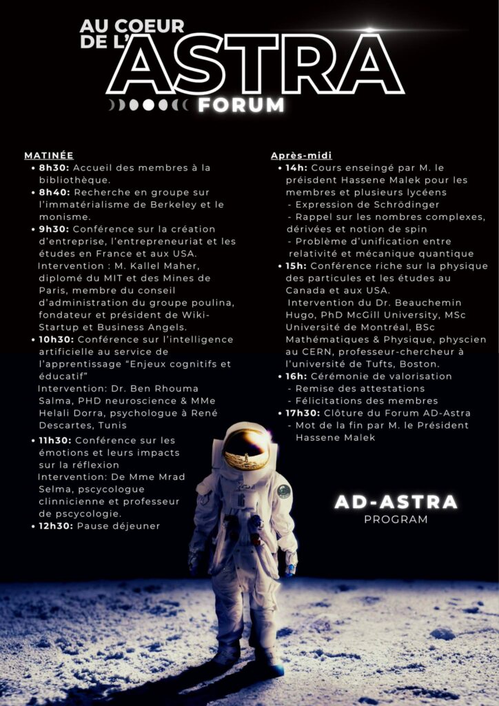 À travers ce forum, les membres d’AD-ASTRA écrivent une nouvelle page, celle d’une génération qui ne subit pas l’avenir, mais le construit. 🌍✨