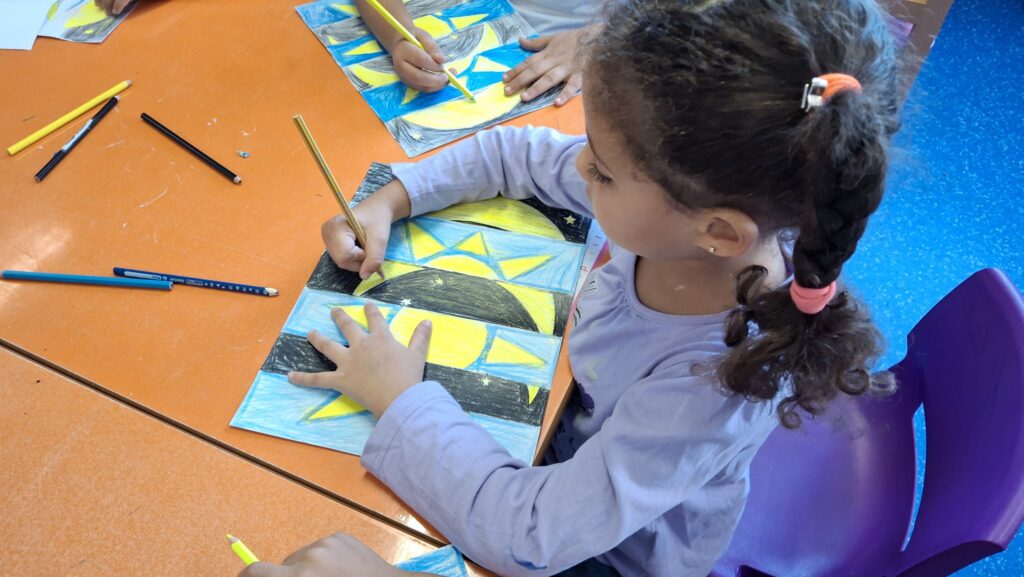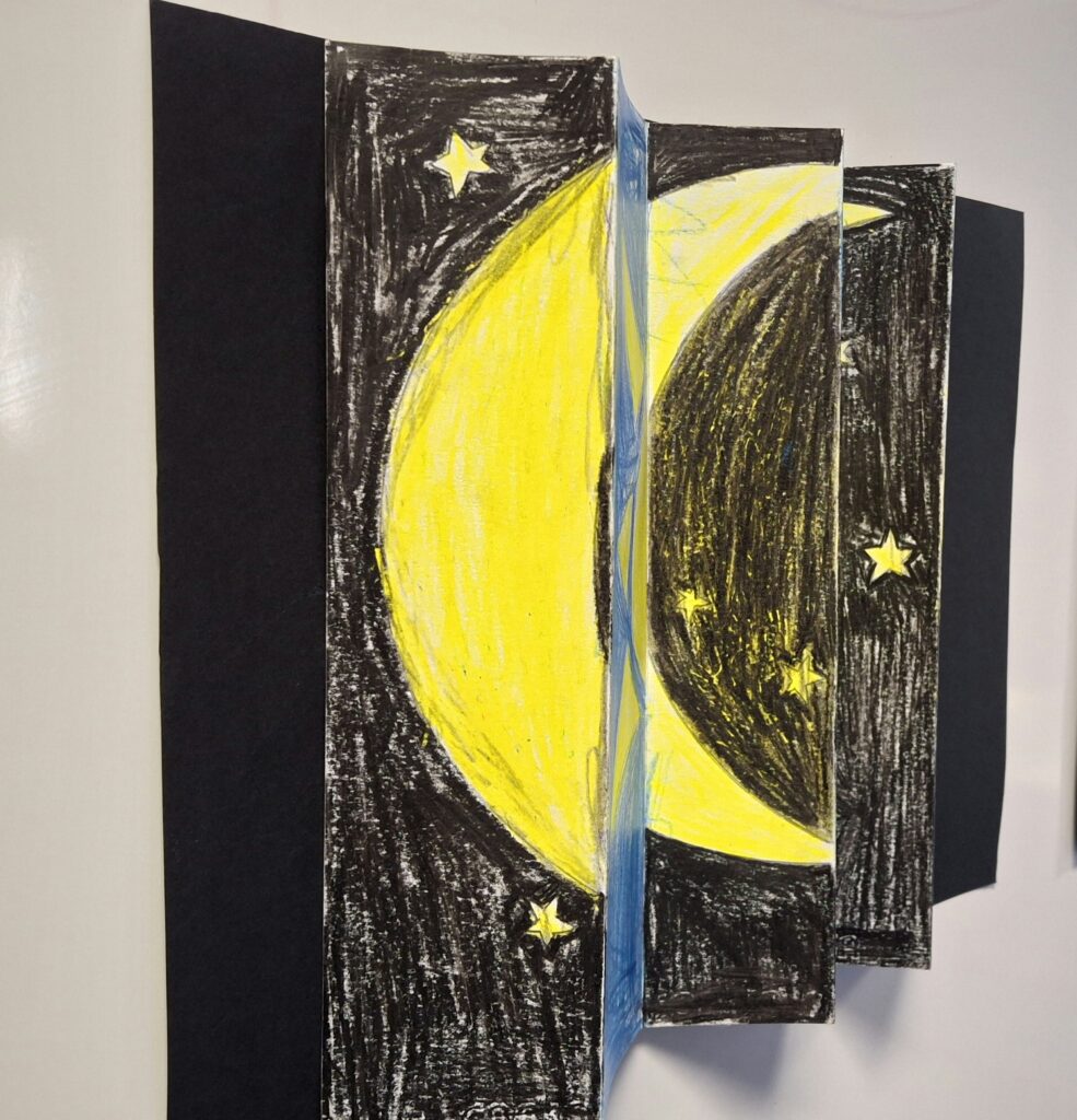 Sous le regard attentif et bienveillant de leurs enseignantes, les élèves ont découvert que l’art peut être un terrain d’expérimentation où science et imagination se rencontrent. 🌞🌜