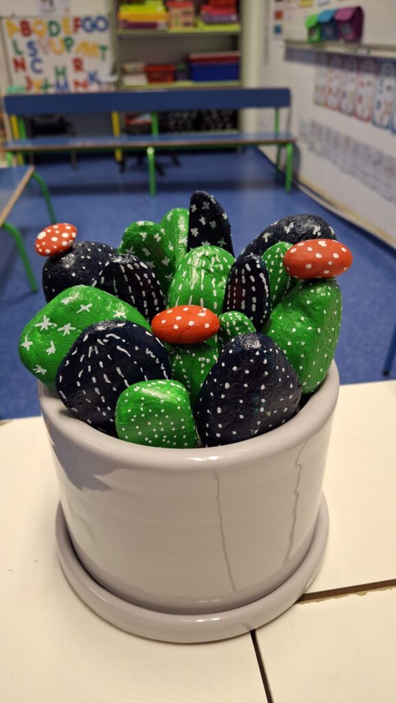 - Atelier artistique : Création de cactus décoratifs en galets, pour un atelier ludique et original.