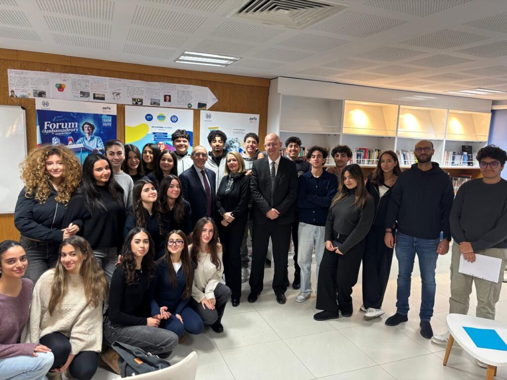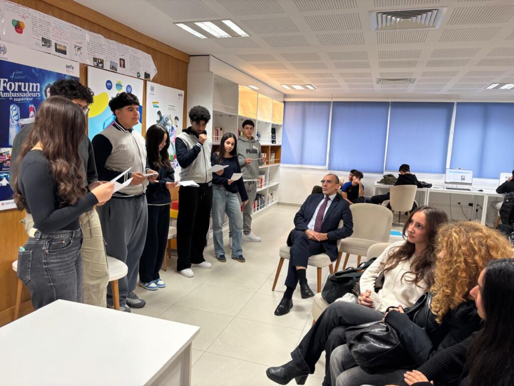 Le site du GSRD d’ENASSR a eu le plaisir et l’honneur d’accueillir, ce matin, Monsieur Dominique MAS, Consul Général de France, venu à la rencontre des élèves de 1ère à la suite de leur voyage pédagogique à Paris.