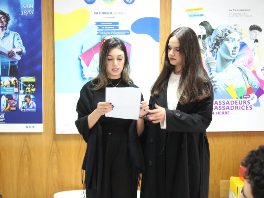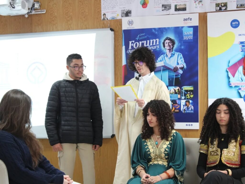 Les élèves de Terminale G et F, encadrés par Mme Manai, ont présenté au CDI lycée une pièce de théâtre inspirée des Mille et Une Nuits, illustrant la capacité de la littérature arabe à transformer la réalité par la force du récit.
