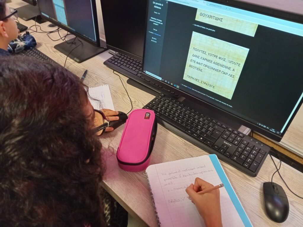 Un passage par la salle informatique a permis d’exploiter le numérique comme levier d’apprentissage, renforçant l’engagement des élèves et leur motivation dans le chapitre consacré aux cités grecques.
